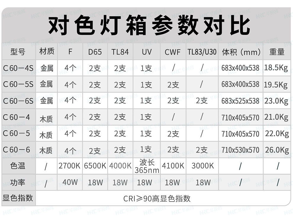 國際標(biāo)準(zhǔn)光源對色燈箱就是對色燈箱里面標(biāo)配的燈管是符合國際標(biāo)準(zhǔn)的燈管,每個(gè)光源的色溫、照度、顯指都是符合國際標(biāo)準(zhǔn)的,裝在對色燈箱箱體里面,從而使對色燈箱達(dá)到一個(gè)符合國際標(biāo)準(zhǔn)的標(biāo)準(zhǔn)環(huán)境,現(xiàn)在市面上通用型的標(biāo)準(zhǔn)光源對色燈箱一般都說多光源,包含D65、D50、D75、TL84、CWF、U30、UV、F/A燈等。