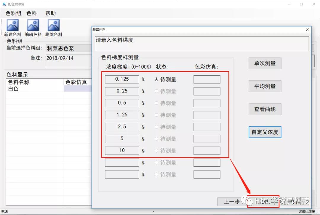 ③ 錄入色料梯度數據