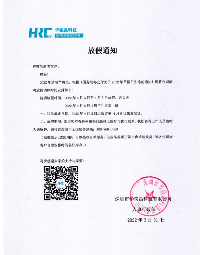 2022年清明節(jié)將至,根據(jù)《國務(wù)院辦公廳關(guān)于2022年節(jié)假日安排的通知》現(xiàn)將公司清明放假調(diào)休時間安排如下: